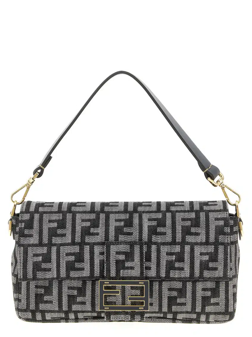 Blue FF Logo Medium Shoulder Bag, magnetic closure, 1 compartment, inside zip pocket, metal logo, removable shoulder handle with removable crossbody strap. Composition: 52% Polyester, 48% Cotton Country Of Origin: Italy