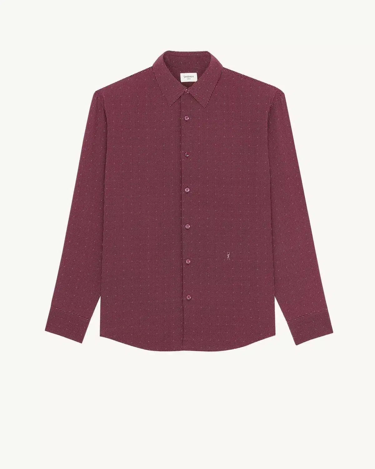 BUTTONED SHIRT MADE WITH CERTIFIED SILK, FEATURING A POINTED YVES COLLAR, DECORATED WITH A MICRO DOTTED DASH MOTIF AND THE CASSANDRE AT THE HIP.