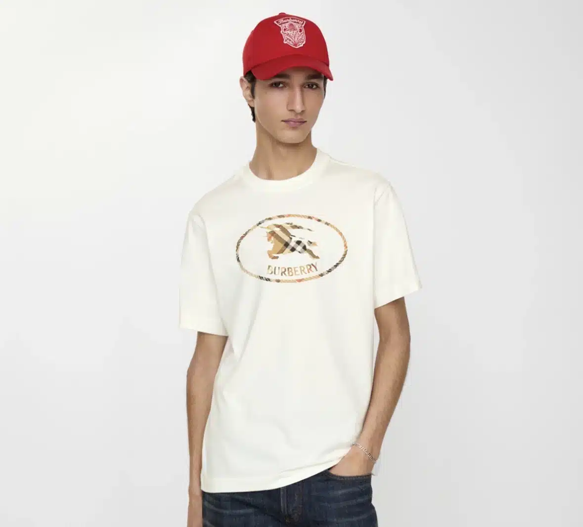 A T-shirt in lightweight cotton jersey, cut to a slim fit. The style is embroidered with our Knight stamp in sand beige Burberry Check – the archival motif was first seen on Burberry bags in the 1980s