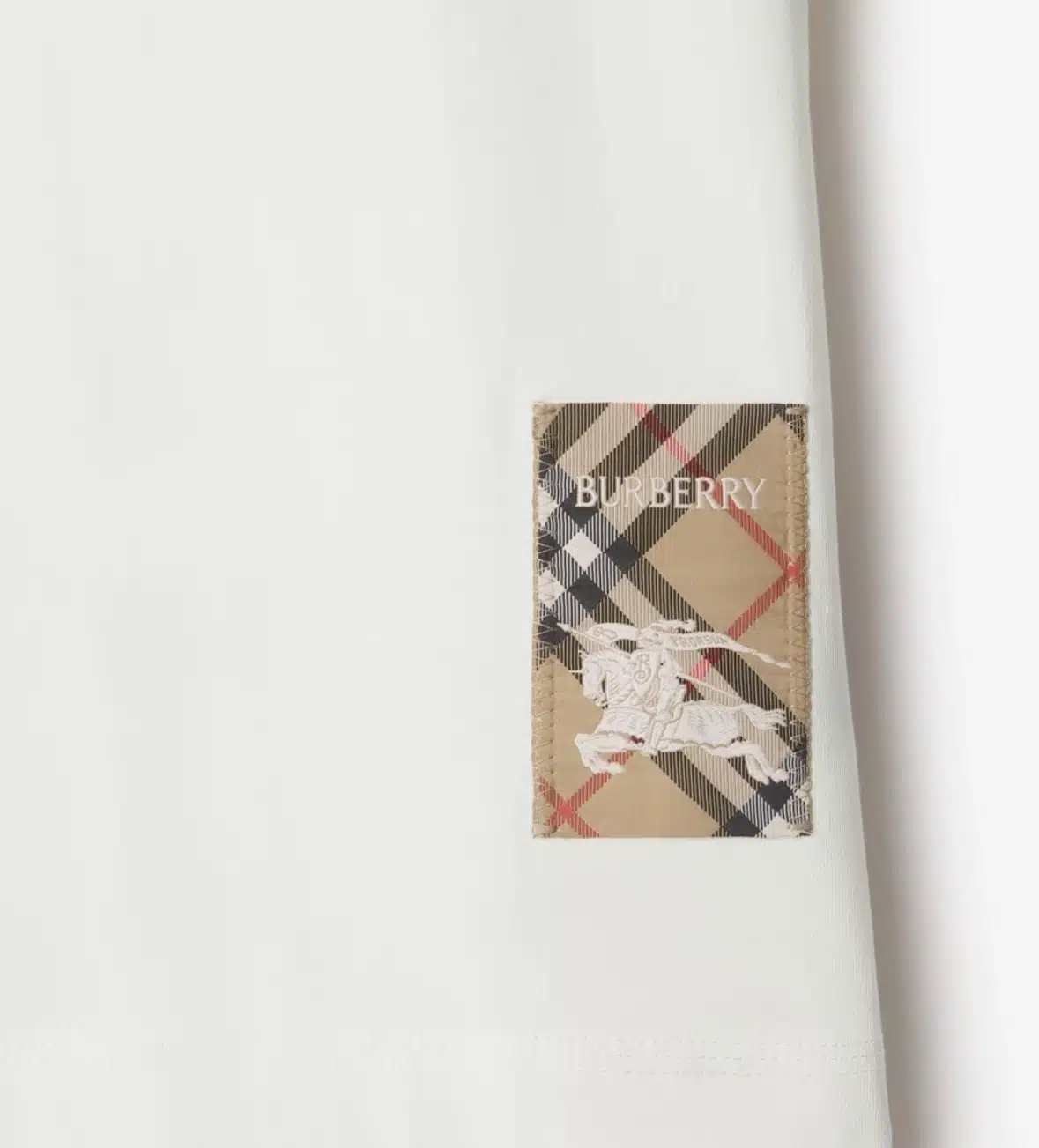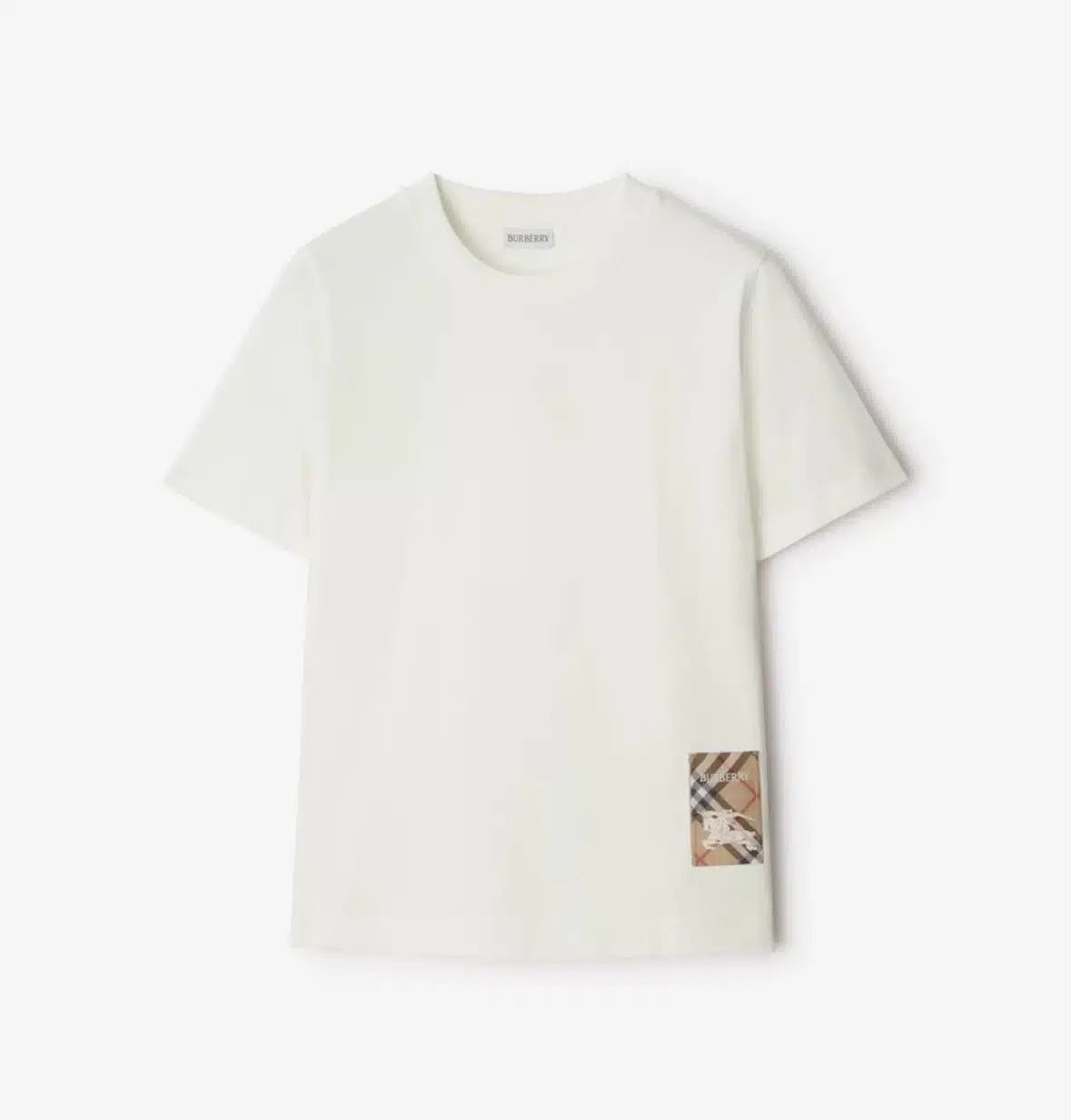 - A T-shirt in cotton jersey, cut to a regular fit. Reworking the label from our signature trench coats, the crew-neck style features an appliquéd patch woven with the Burberry Check, logo and Equestrian Knight Design.
