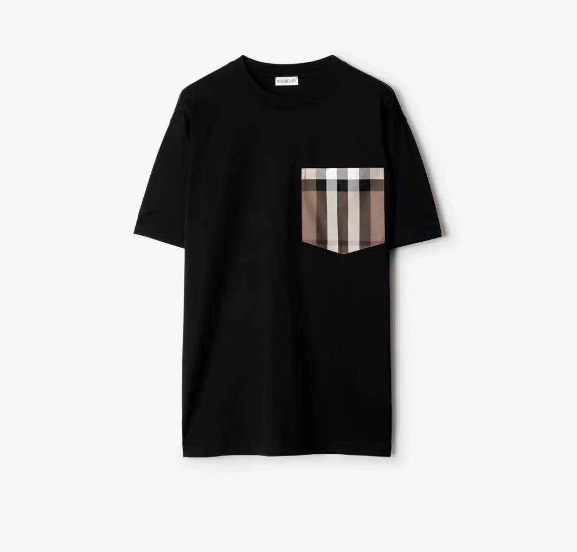- A cotton jersey T-shirt with a contrasting patch pocket in Burberry Check. The crew-neck style is cut to an oversized fit.