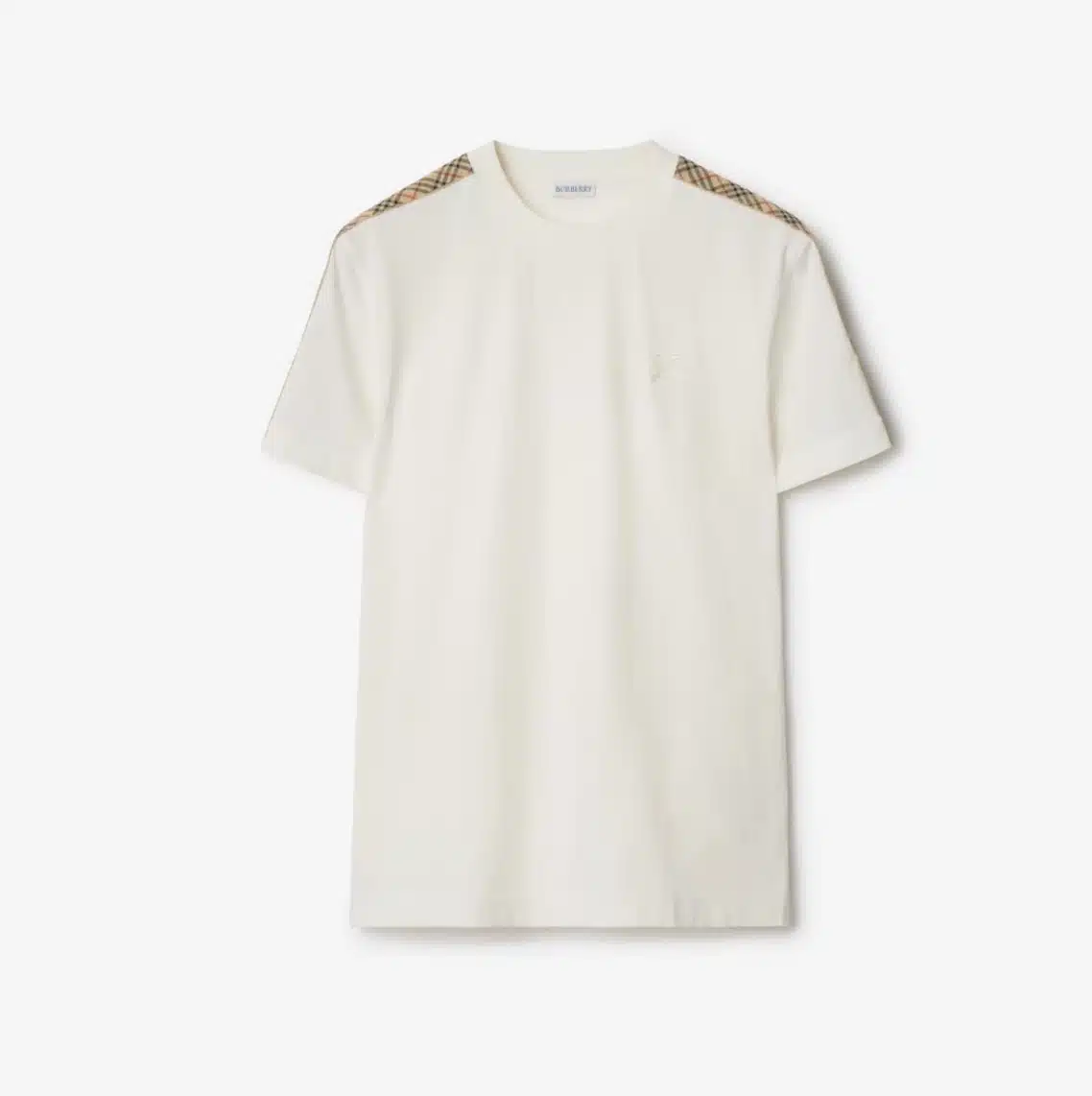 - A T-shirt in lightweight cotton jersey, cut to a slim fit. The style is embroidered with the Equestrian Knight Design and framed with Burberry Check taping at the sleeves.