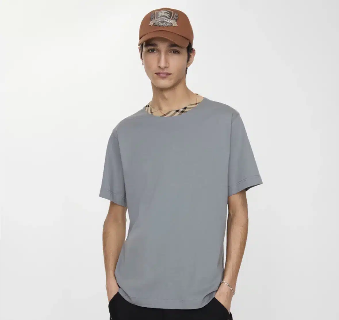 - A crew-neck T-shirt in cotton jersey, cut to a relaxed fit. The collar is detailed with Burberry Check taping in our signature sand beige.