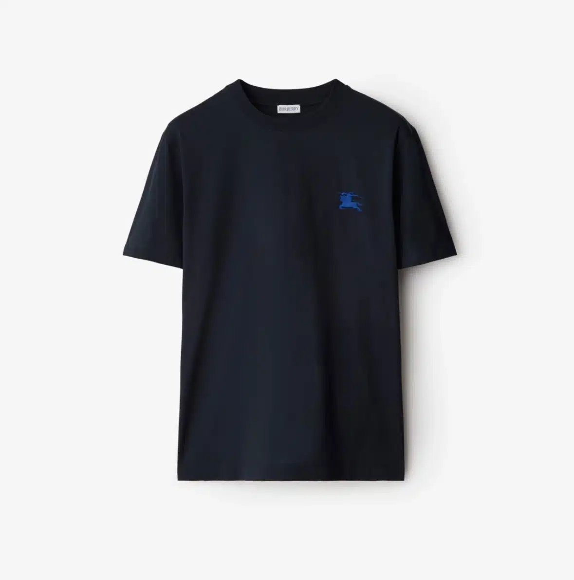 - A cotton jersey T-shirt embroidered with a contrasting Equestrian Knight Design. The style is cut to a slim fit. Part of Burberry Classics, wardrobe foundations with a unique Burberry slant.
