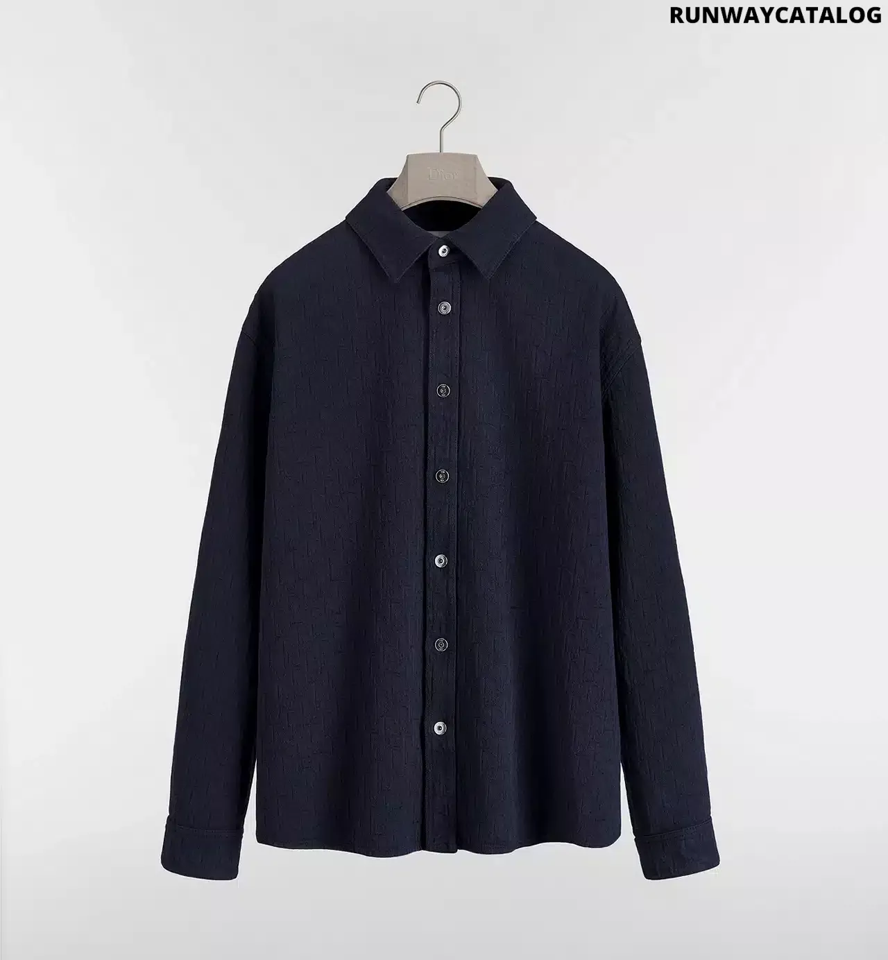 New for Summer 2026, the Dior Oblique shirt showcases one of the House’s iconic motifs. Made in navy blue cotton jacquard, it features an allover Dior Oblique pattern that gives the timeless design a fresh twist. Paired with jeans from the collection, the shirt will elevate outfits with a graphic touch.