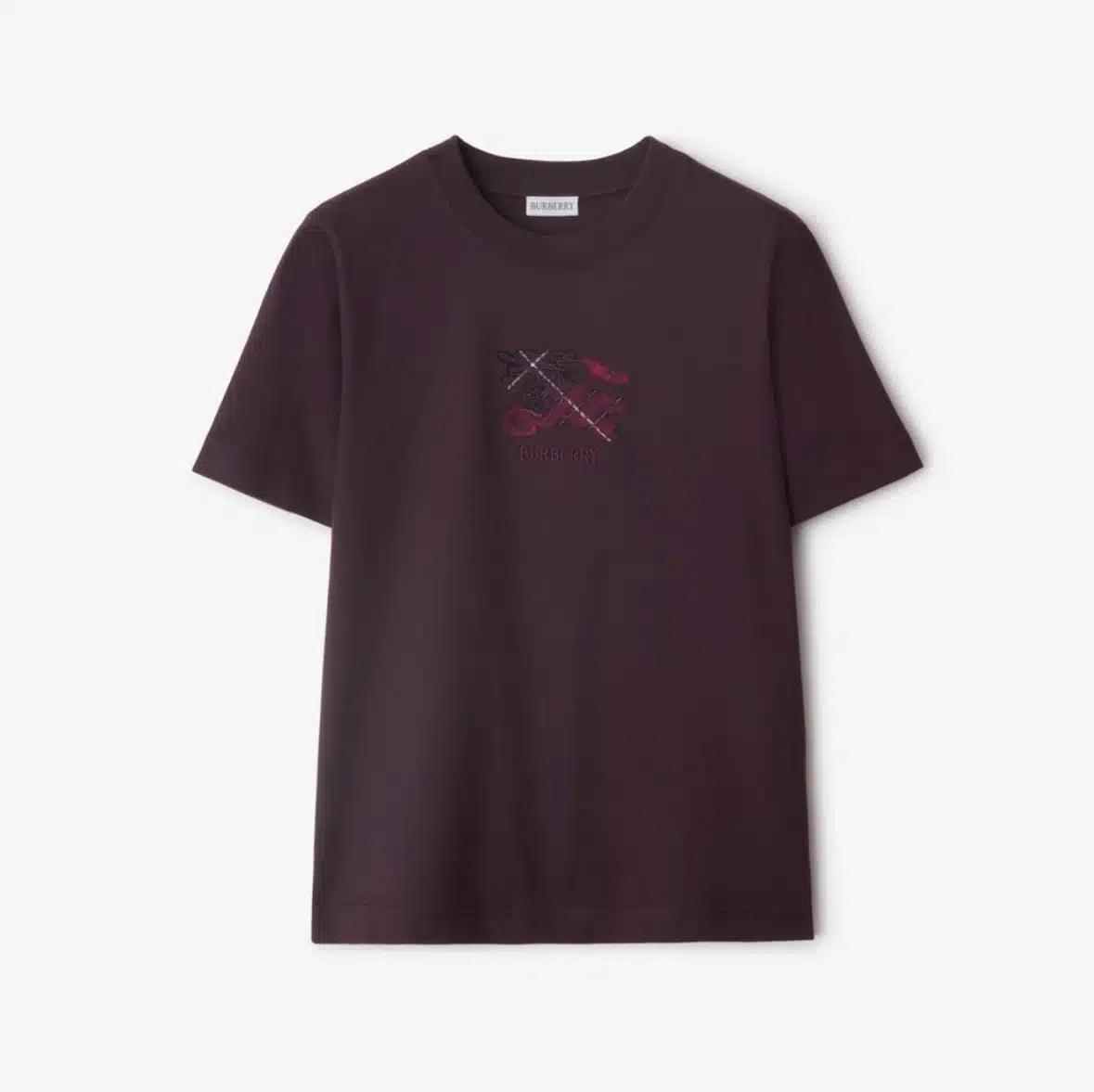 - A T-shirt in lightweight cotton jersey, cut to a regular fit. The style is embroidered with our logo and Equestrian Knight Design on a Burberry Check backdrop in seasonal poppy red.