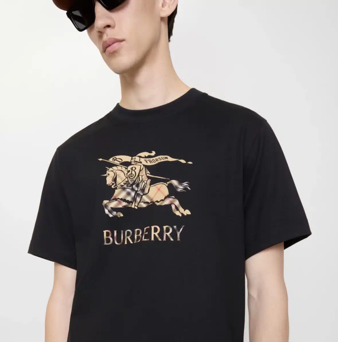- A T-shirt made from lightweight cotton jersey, cut to a slim fit. The crew-neck style is printed with our logo and Equestrian Knight Design filled with an ombré Burberry Check.