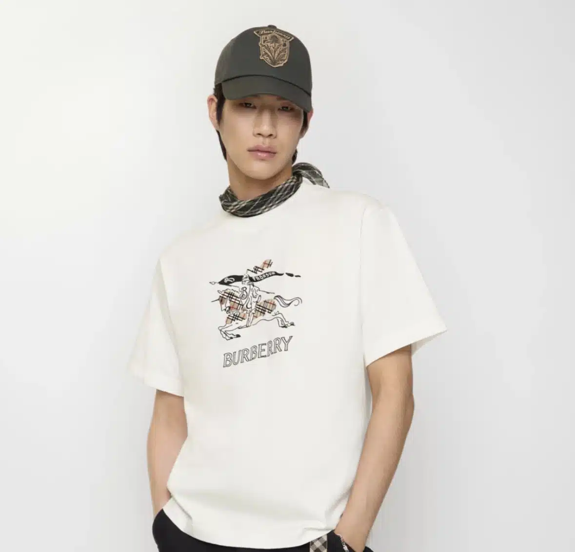 - A T-shirt in midweight cotton jersey, cut to a relaxed fit. The crew-neck style is illustrated with our logo, Equestrian Knight Design, and Burberry Check in chain-stitch embroidery.