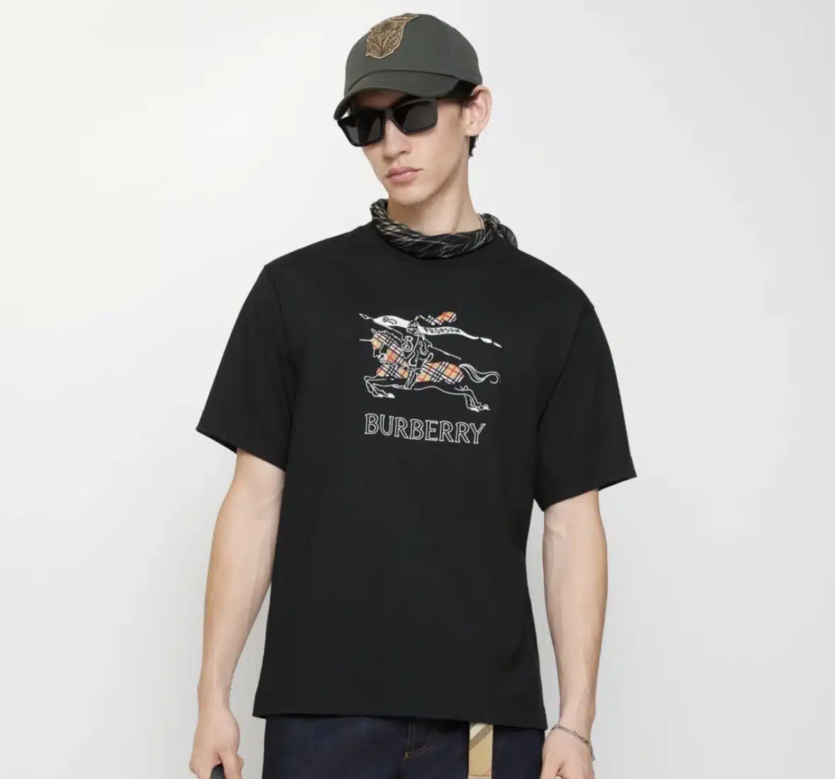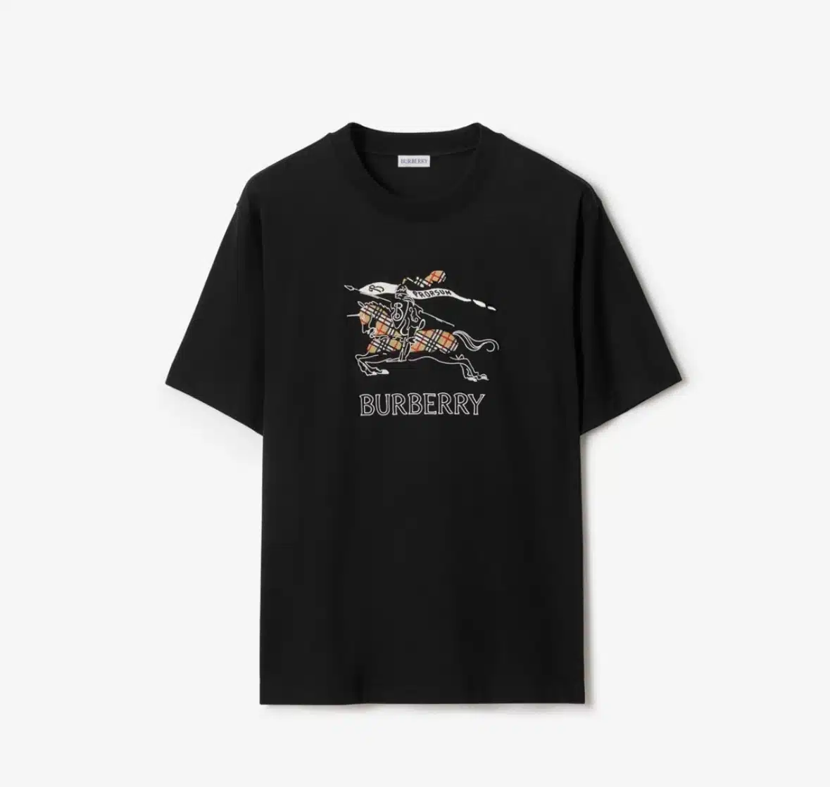 - A T-shirt in midweight cotton jersey, cut to a relaxed fit. The crew-neck style is illustrated with our logo, Equestrian Knight Design, and Burberry Check in chain-stitch embroidery.