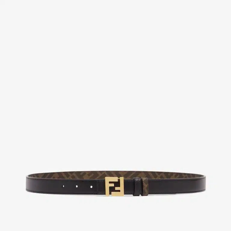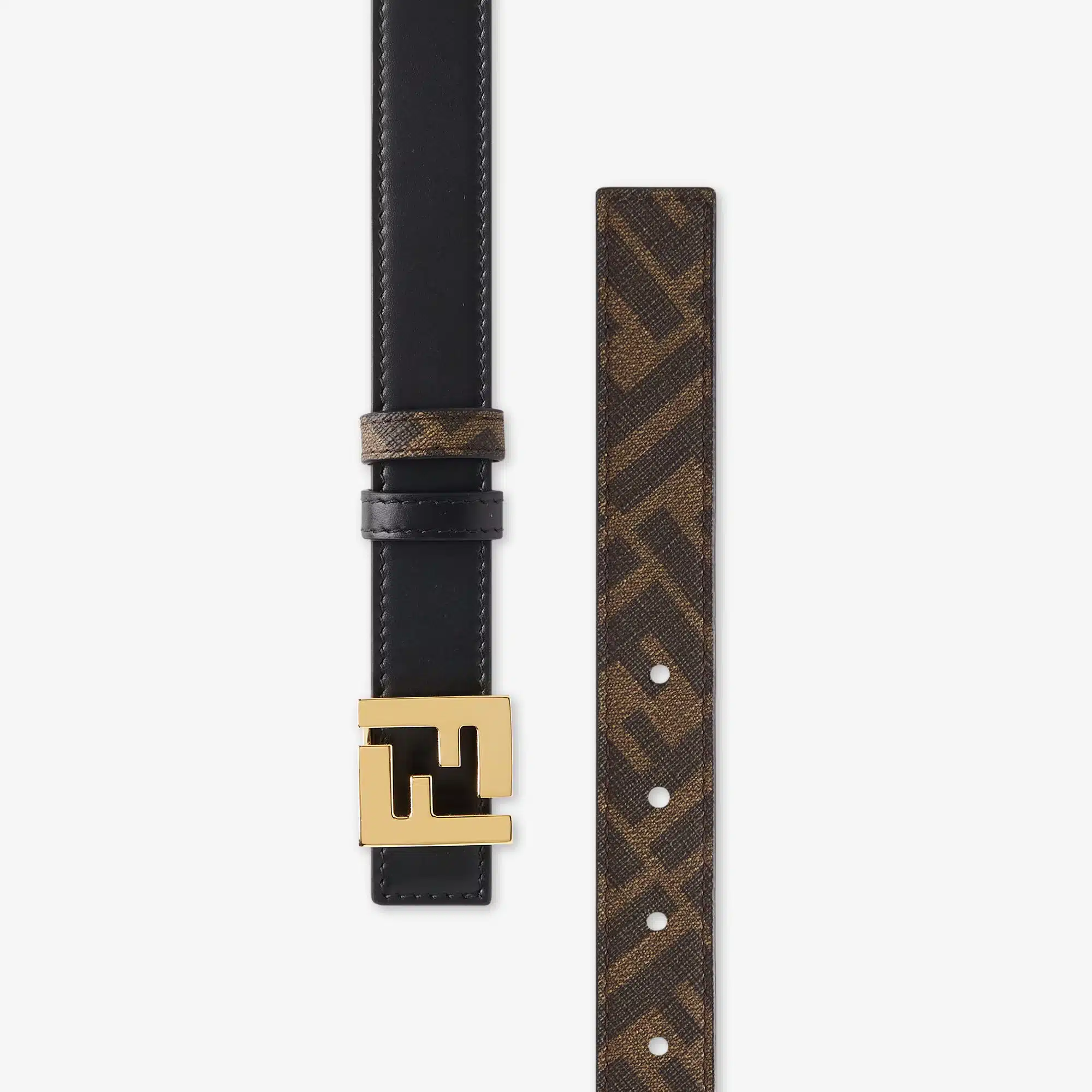 Reversible belt with FF Squared stud buckle. Made of black leather. Brown FF canvas lining. Gold-finish metalware.