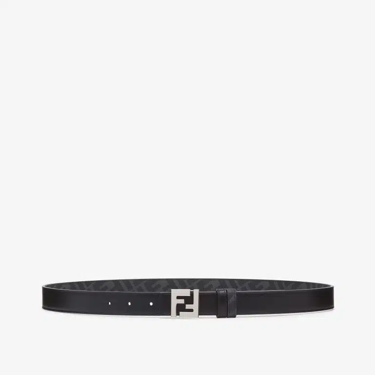 Reversible belt with FF Squared stud buckle. Made of black leather. Black FF canvas lining. Palladium-finish metalware.