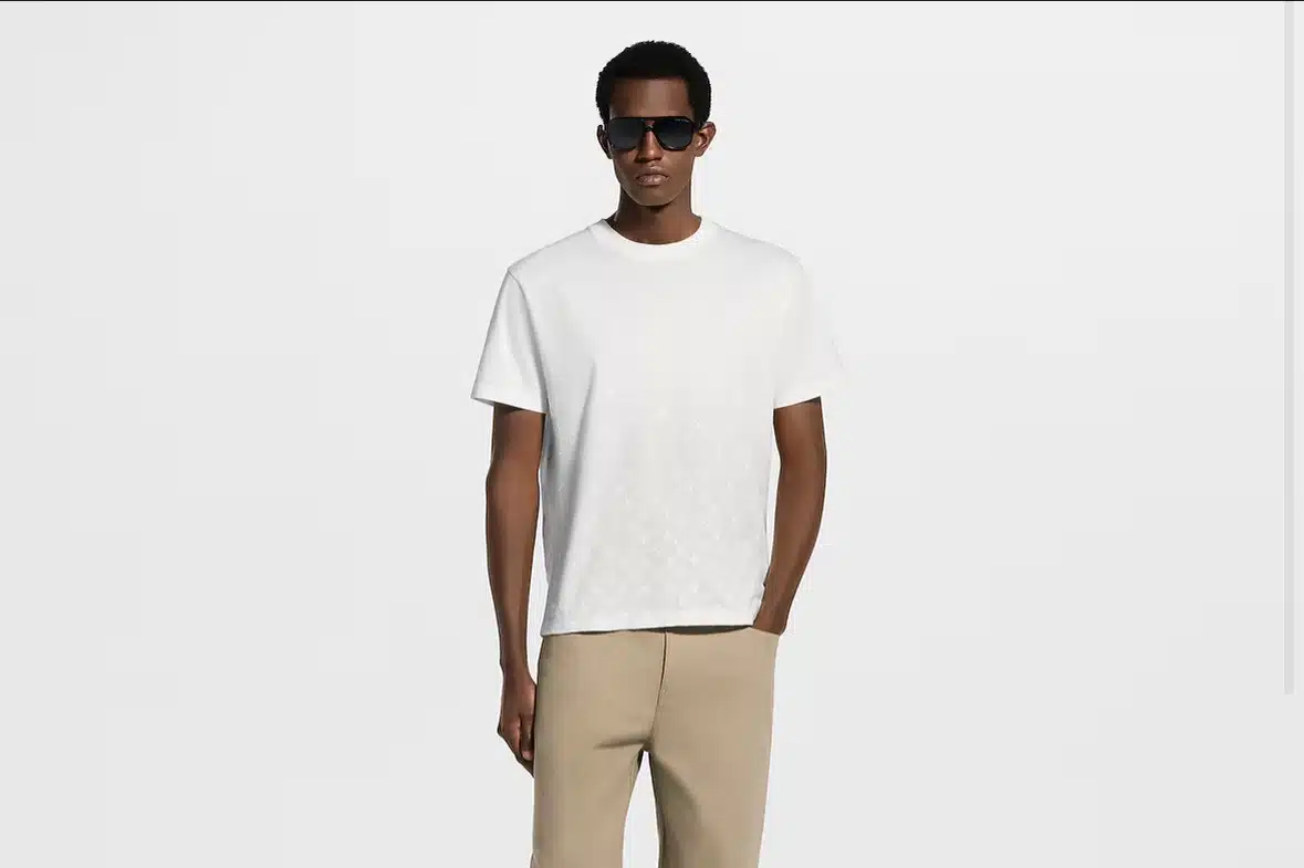 Crafted in a light organic cotton jersey, this classic T-shirt is elevated with a softly textured flock Monogram Gradient motif. It is executed in a discreet tone-on-tone treatment with a signature that rises and disperses from the hem. This elegant piece in a timeless milky white brings a subtle signature accent to casual and everyday looks.
