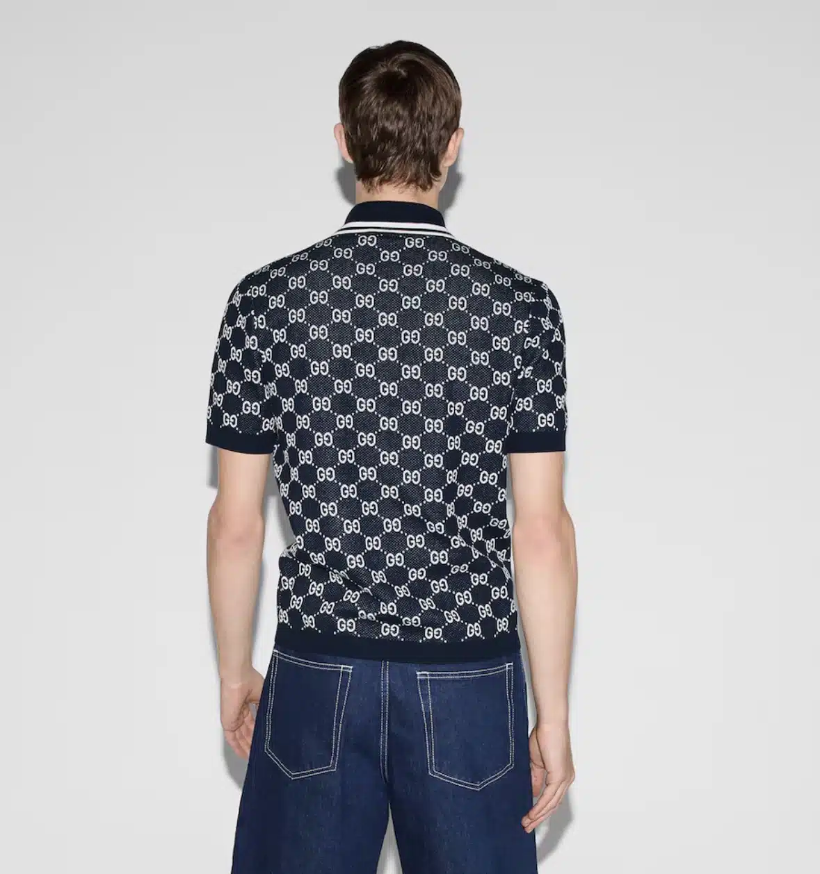 Taking inspiration from founder Guccio Gucci’s monogram, the GG motif continues to be a firm favorite of the House. This polo shirt has been made from a GG cotton knit jacquard with a contrasting rib trim.