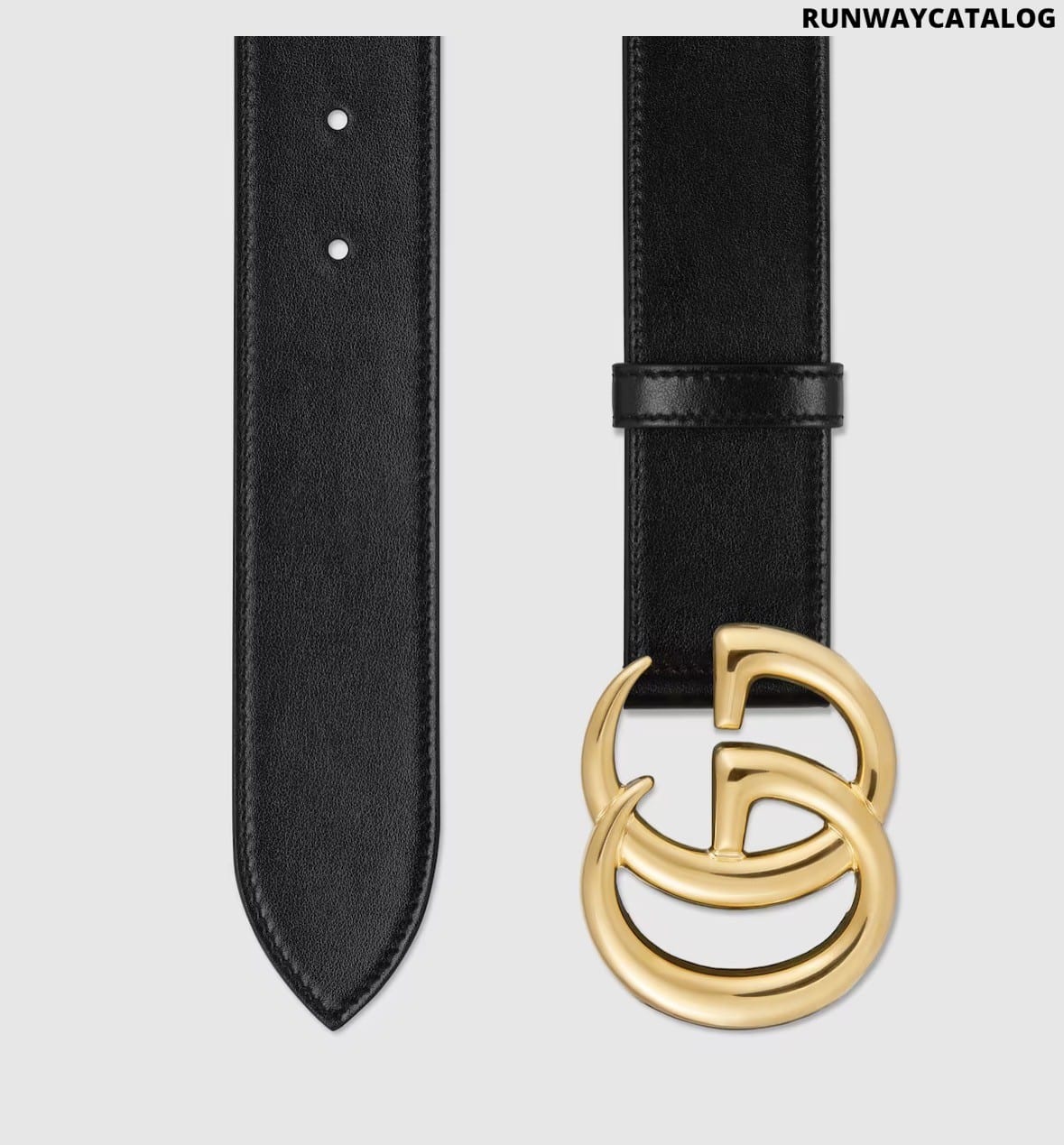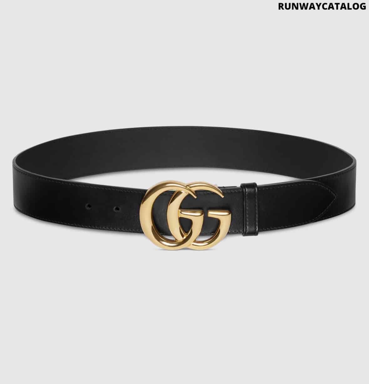 The emblematic Double G is reintroduced for Spring Summer 2020 in a luminous gold-tone, set on a men’s smooth black leather belt
