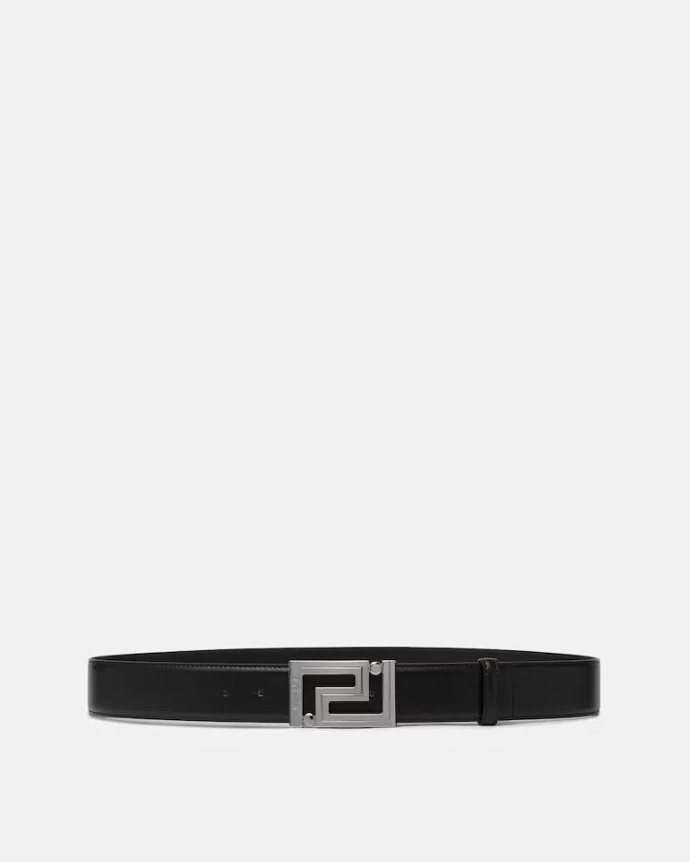This leather belt is accented by a logo-engraved Greca buckle.