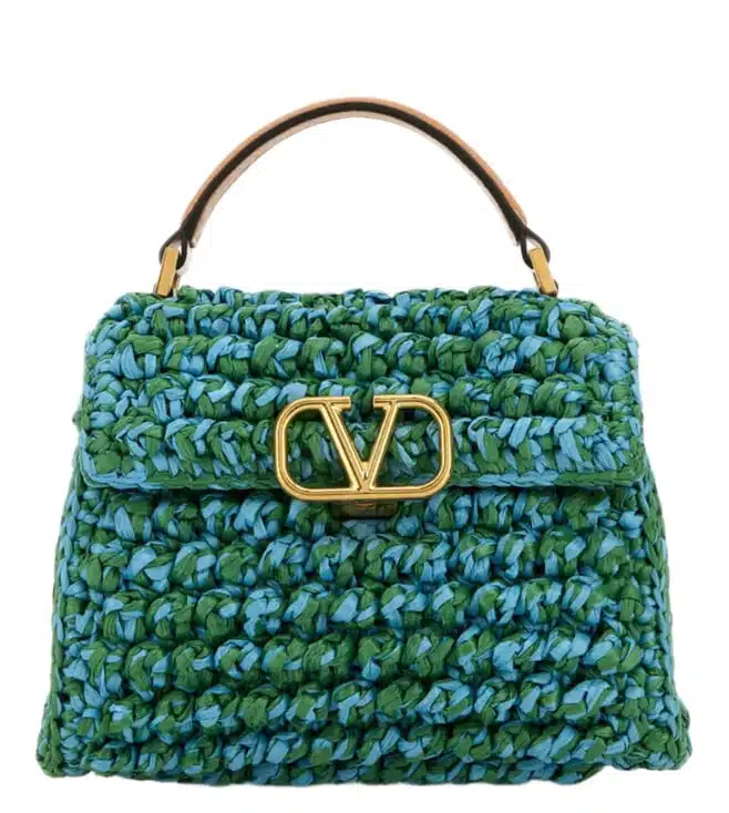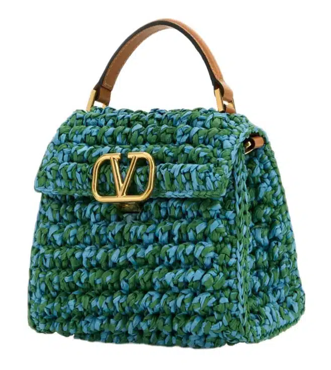 Green v logo satchel, clip closure, 1 compartment, front logo, top handle with removable crossbody strap. Products purchased from Darveys are supported exclusively by the warranty/exchange policies of Darveys and its partner boutiques. Brand owners and their channel partners are not responsible for exchange/warranty services for items purchased through Darveys