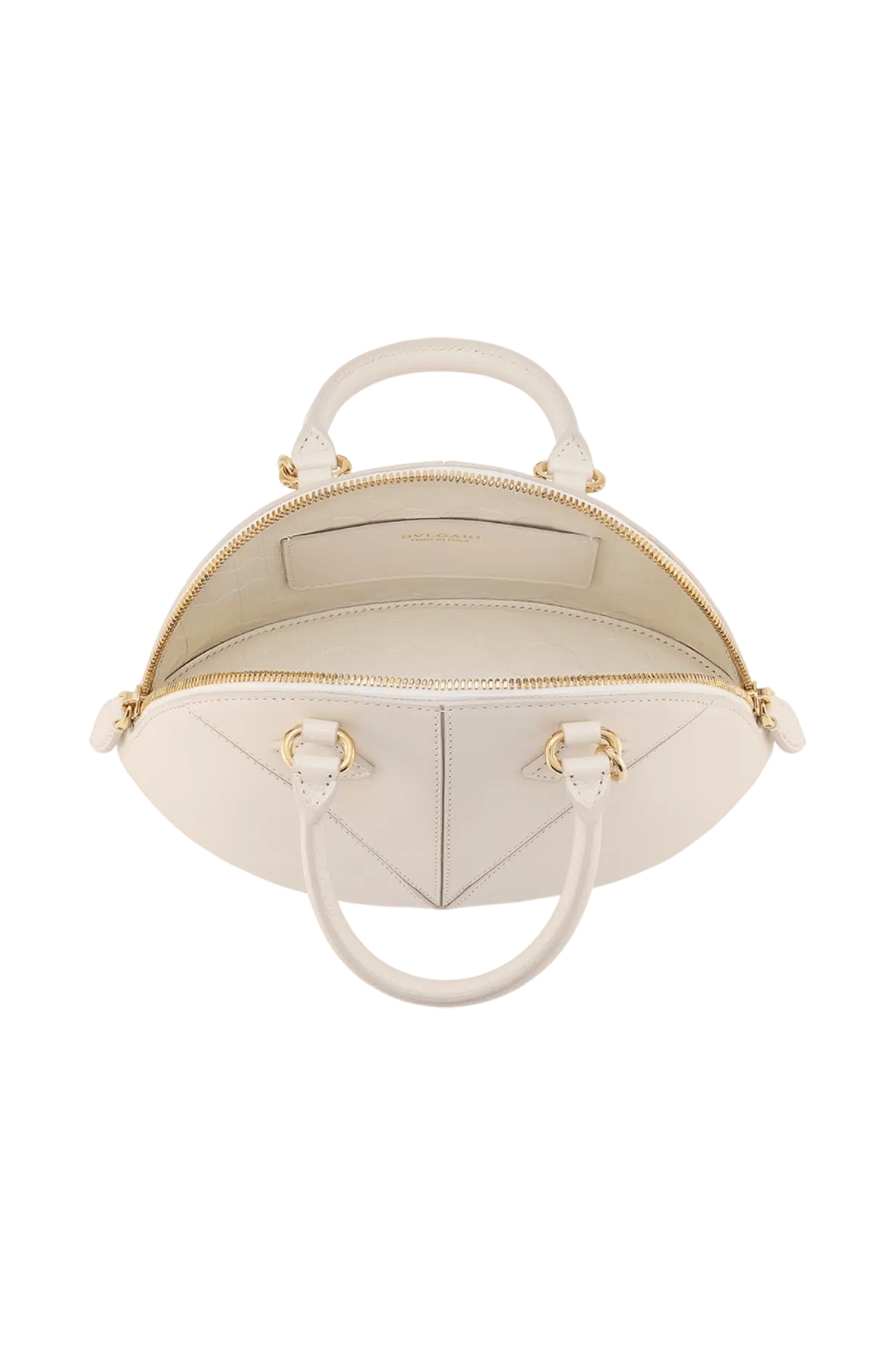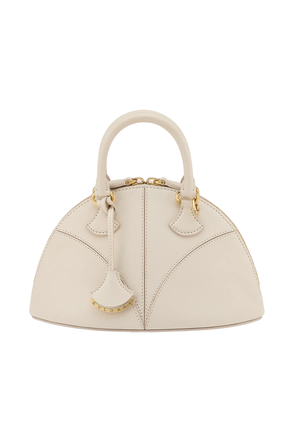 Crafted in Perla White goat leather with Perla White nappa leather lining embossed with the Calla pattern, the Marquise small top handle bag echoes the elegance of the timeless Marquise gemstone cut in its distinctive and sophisticated shape. Inspired by Bvlgari’s jewellery DNA and Roman cultural heritage, the day bag integrates the signature fan-shaped motif from the Divas’ Dream collection on its structured body as well as on the handles and removable leather charm, which houses a mirror with a Bvlgari logo engraving. The model is completed by a leather strap and a zipped closure. 23 x 15 x 12 cm – 9.1 x 5.9 x 4.7 inches. Made in Italy.