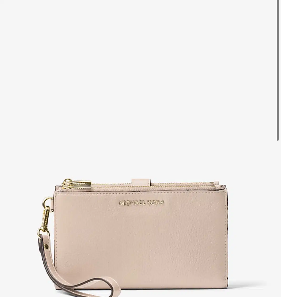 Done in a rich pebbled leather for timeless status, this sleek wallet has two zip sides that unfold to reveal a center with pockets for all the essentials, from credit cards to your smartphone. A wristlet strap perfects its versatility factor, so it can be carried alone or in a tote.