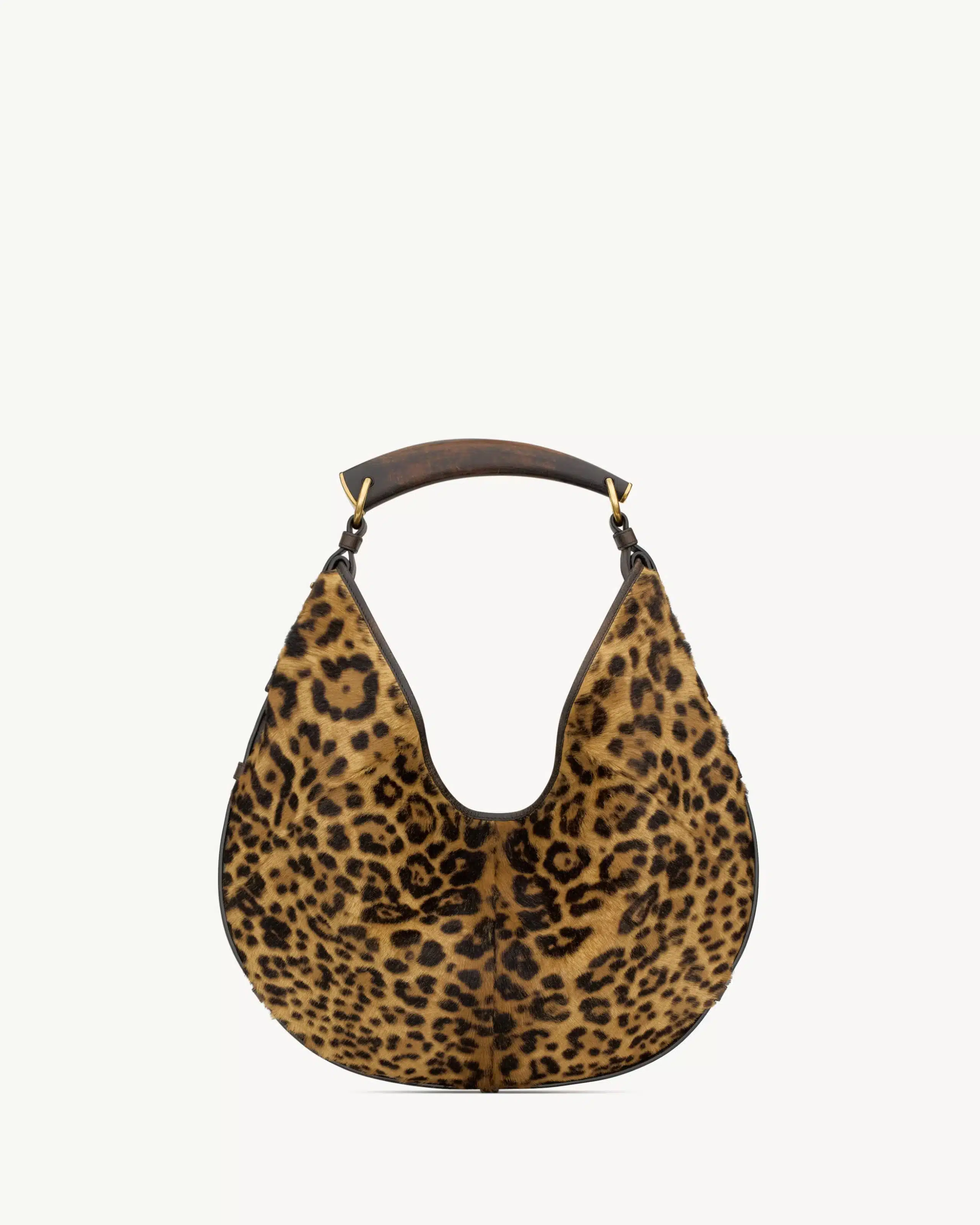 THE MEDIUM VERSION OF THE MOMBASA HOBO BAG’S MODERN REVIVAL, IN LEOPARD-PRINT PONY HAIR LEATHER LINED IN SUEDE.