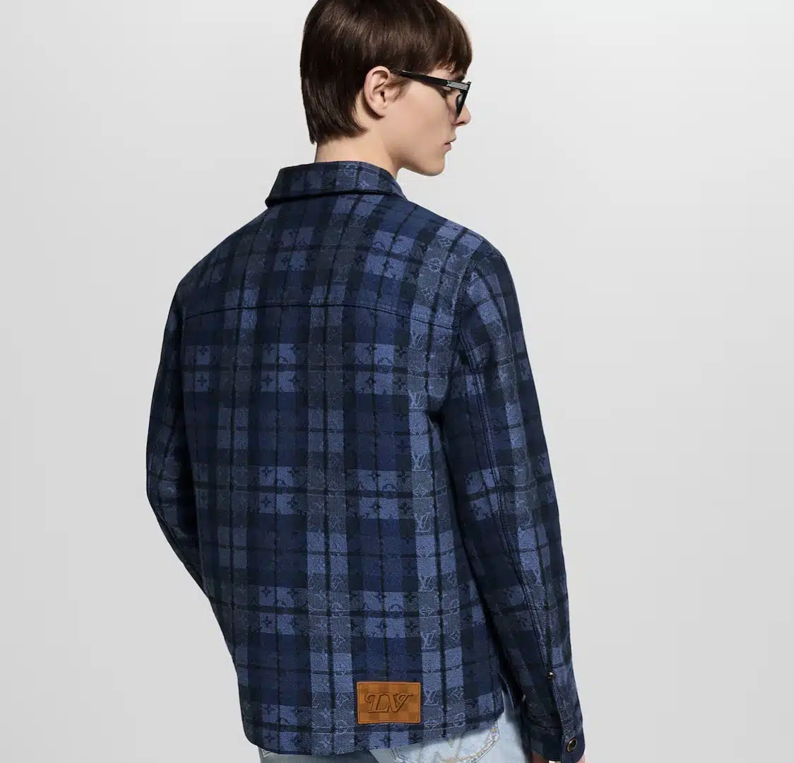 This denim overshirt is elevated with this collection’s Monogram Tartan motif, executed in a sophisticated jacquard in a range of indigo tones. A leather jacqueron with embossed signatures adorns the back. This casual workwear silhouette features two chest pockets – one on the interior and one outside – and can be styled with matching pants for a total look.