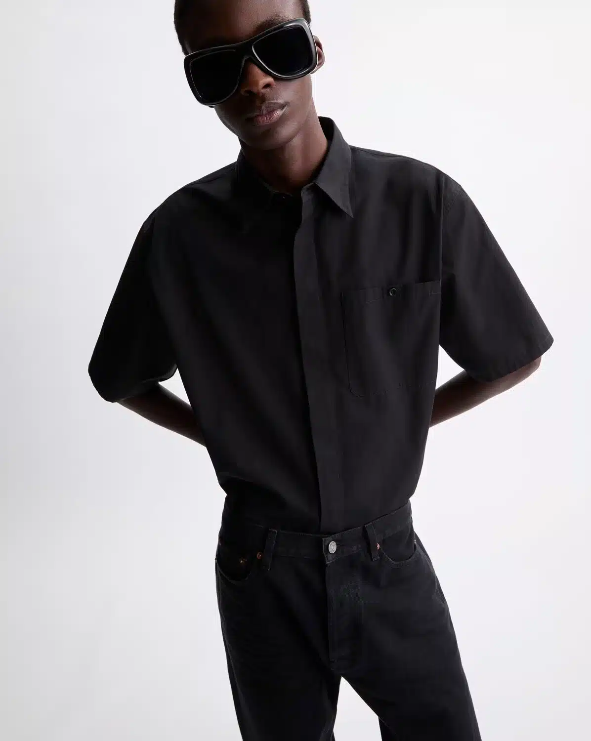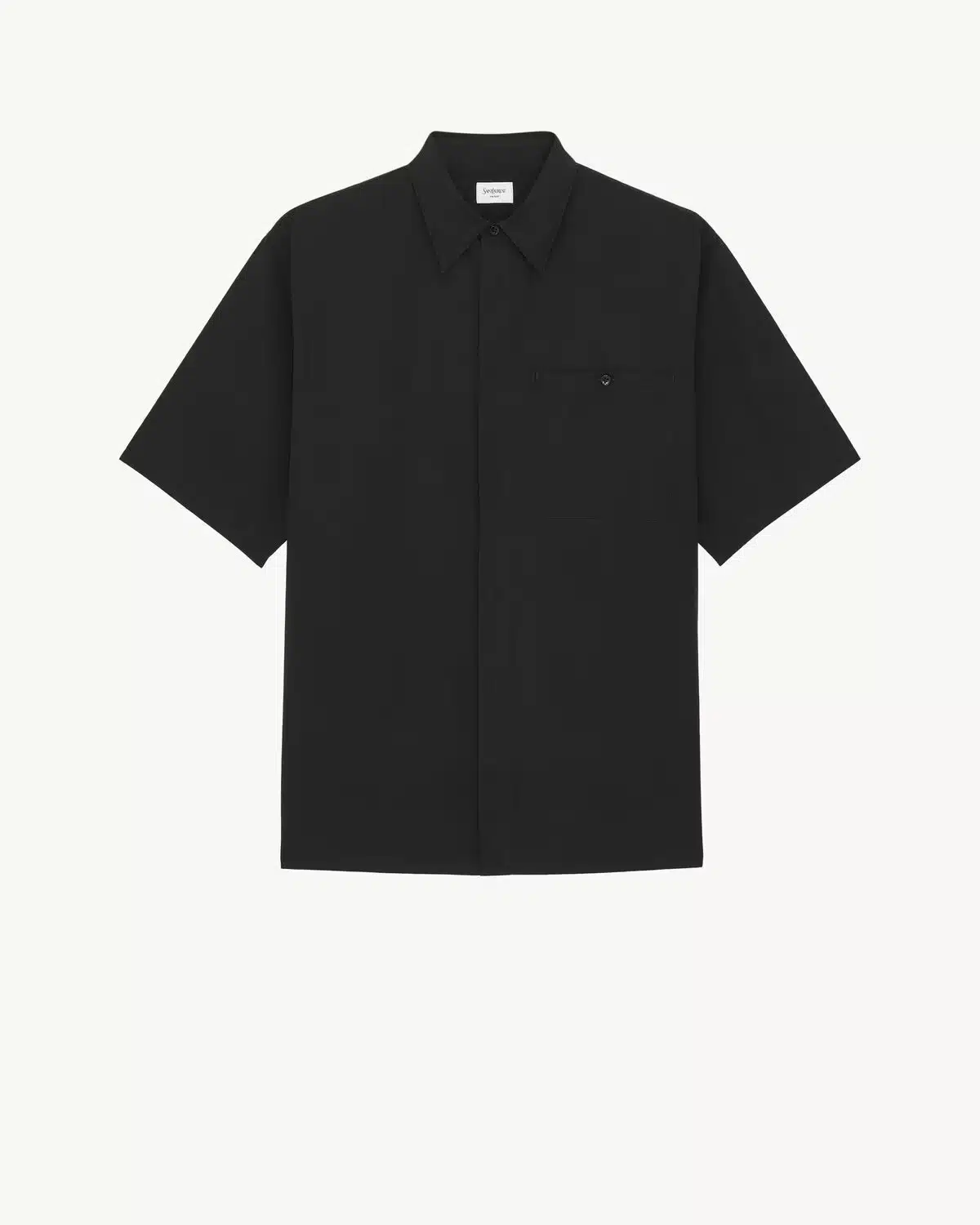 SHORT-SLEEVE CONCEALED-BUTTON PAJAMA SHIRT MADE WITH CERTIFIED COTTON, FEATURING A POINTED YVES COLLAR AND CHEST POCKET