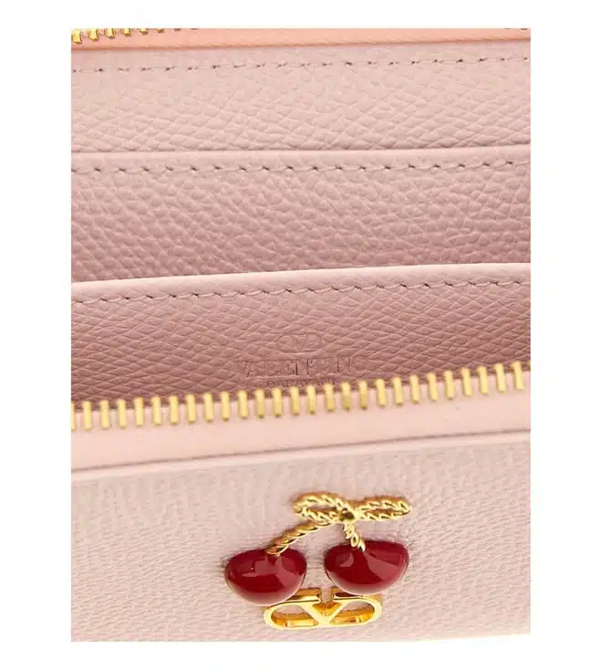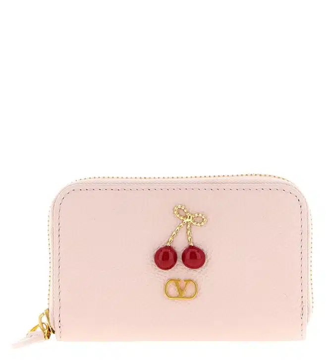 Mini wallet in grainy leather, zip closure, two gusset compartments, front detail in metal and cherryfic enamel. Products purchased from Darveys are supported exclusively by the warranty/exchange policies of Darveys and its partner boutiques. Brand owners and their channel partners are not responsible for exchange/warranty services for items purchased through Darveys