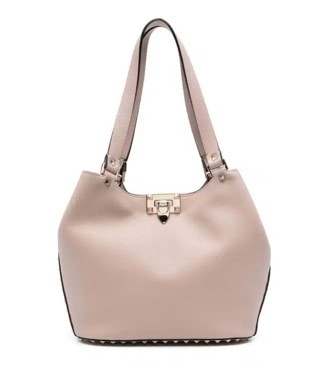 Calf leather 100 percentpowder pinkcalfskingrained surfacerockstud rivetsgold-colored fittings with logo engravinglogo stamp insideclasp closure/lobster clasptwo flat shoulder strapsmain subjectpatch inside pocket. Products purchased from Darveys are supported exclusively by the warranty/exchange policies of Darveys and its partner boutiques. Brand owners and their channel partners are not responsible for exchange/warranty services for items purchased through Darveys
