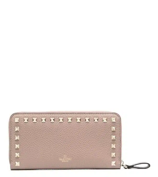 Valentino Garavani Rockstud Wallet In Pink Leather With Decorative Studs, Internal Zip Compartment, Credit Card Slots, And Zip Closure. With its timeless design and practical features, this bag is a must-have accessory for the modern woman on-the-go. Products purchased from Darveys are supported exclusively by the warranty/exchange policies of Darveys and its partner boutiques. Brand owners and their channel partners are not responsible for exchange/warranty services for items purchased through Darveys.