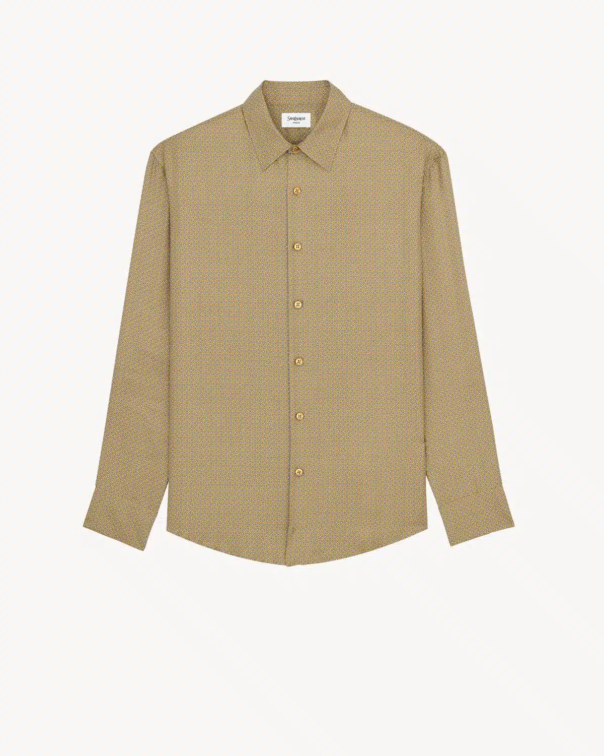 BUTTONED SHIRT MADE WITH CERTIFIED SILK SATIN, FEATURING A POINTED YVES COLLAR, DECORATED WITH A MICRO STARBURST SQUARE AND DIAMOND MOTIF