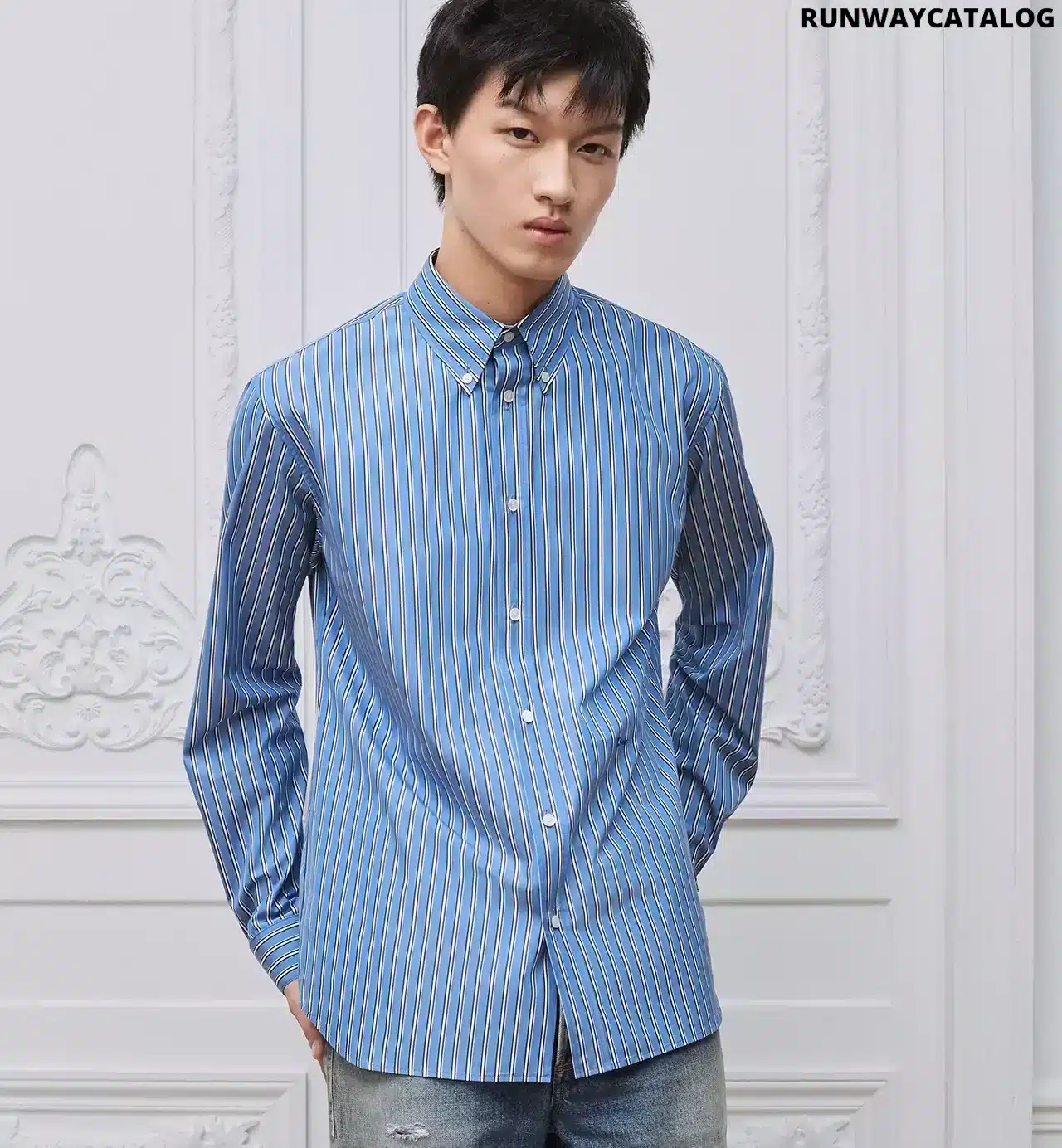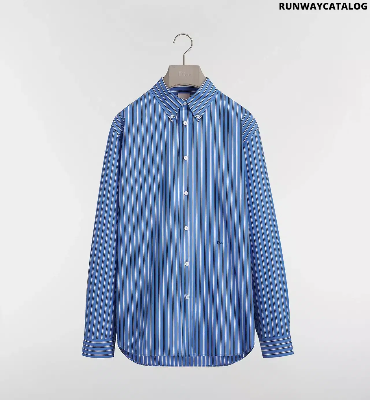 Tailoring is quintessential Dior atelier savoir-faire and lies at the heart of the House’s heritage. New for Summer 2026 and unveiled at his debut fashion show for the House, Jonathan Anderson reimagines the elegant hallmarks of an iconic Dior silhouette — the classic shirt. Crafted in blue striped cotton poplin, it is distinguished by a Dior embroidery and a button collar. A wardrobe essential, the shirt can be effortlessly coordinated with elegant pants or a suit to complete a timeless look.