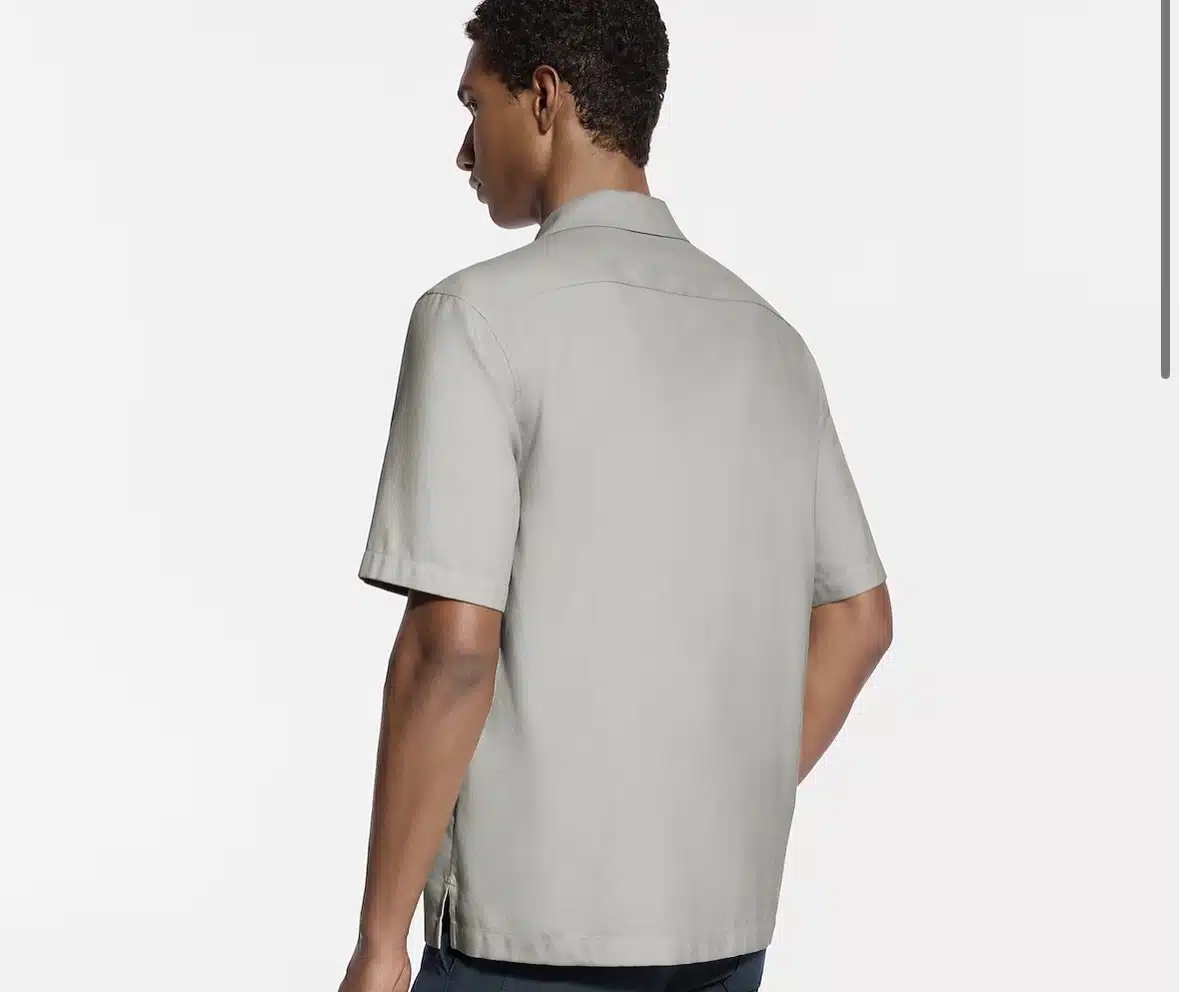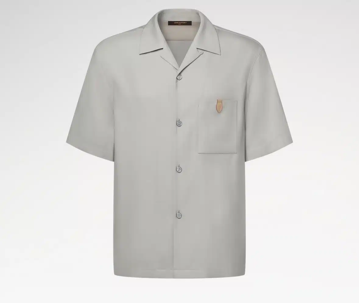 Blending luxury and comfort, this beige short-sleeved shirt features a light cotton, silk and cashmere blend twill with a soft and airy touch. It has a relaxed, draped fit with an open collar and LV stitching on the first button. The chest pocket is adorned with a VVN leather signature tab that recalls the House’s trunk-making heritage.