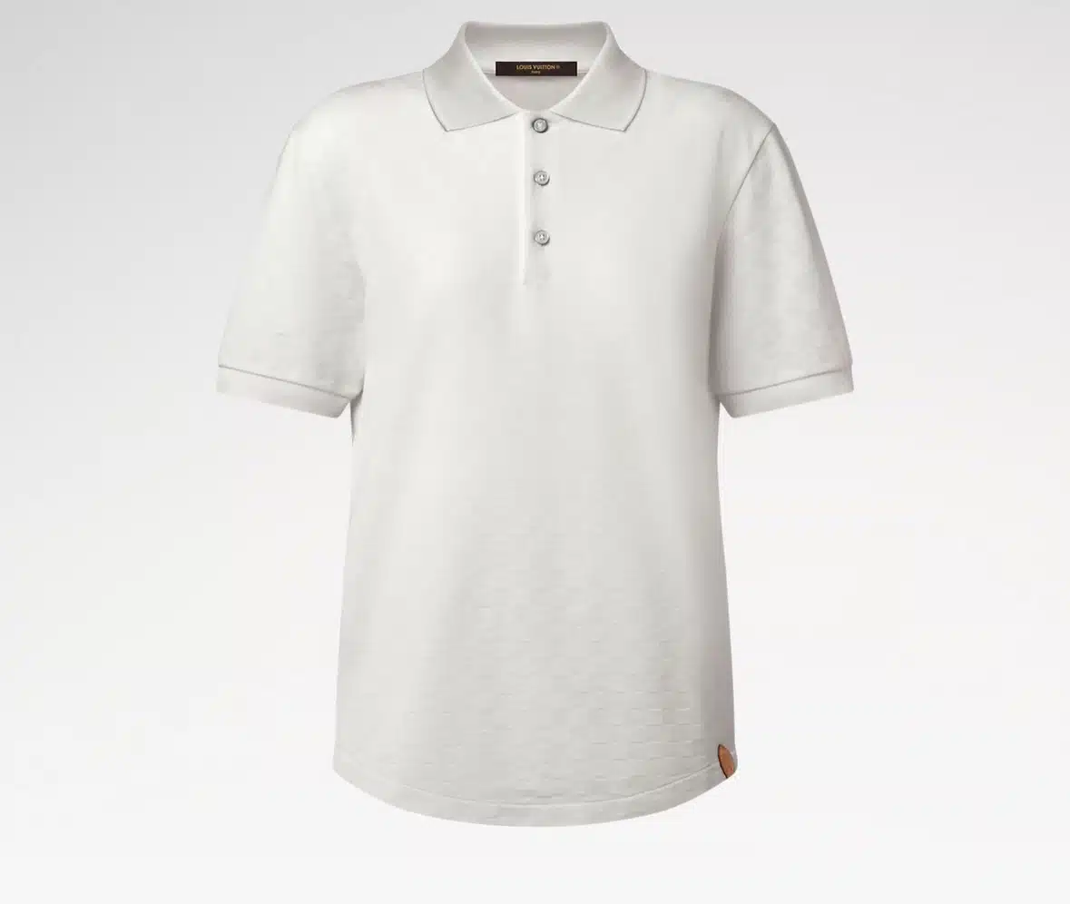 This short-sleeved polo in lustrous silk-cotton piqué offers superior lightness and breathability. It is elevated with an allover Damier motif, revealed in the textured jacquard knit. LV stitching signs the buttons while a VVN leather tab on the bottom left hem nods to the House’s leather goods heritage. This timeless style can adapt to formal or everyday looks.