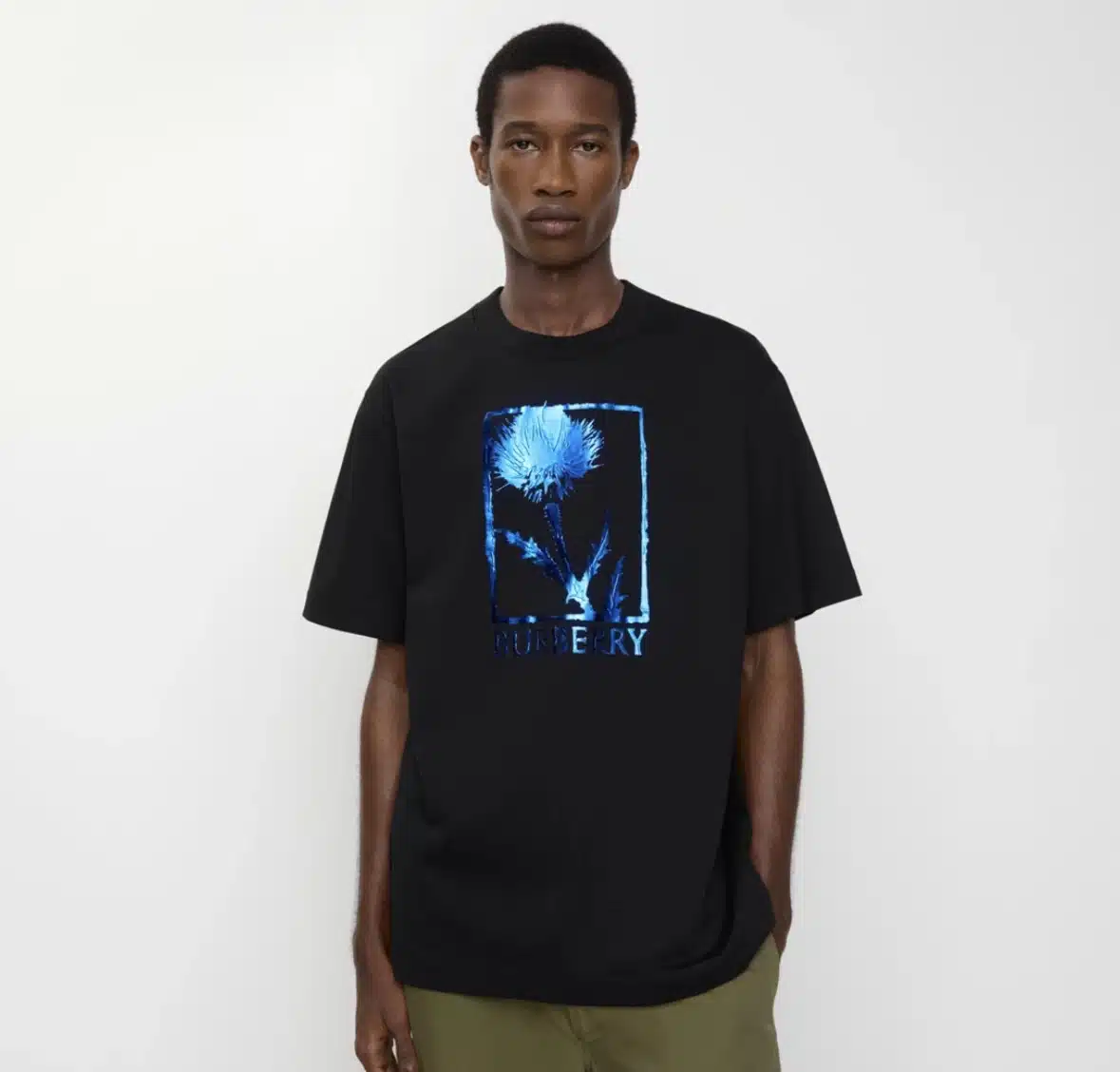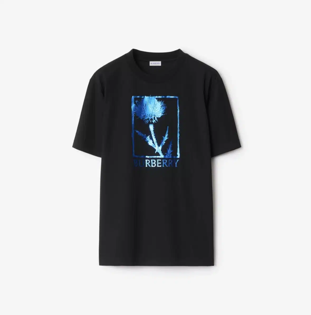 - A T-shirt made from lightweight cotton jersey, cut to a relaxed fit. The style is printed with a metallic logo and thistle – a hardy wildflower synonymous with the British Isles.