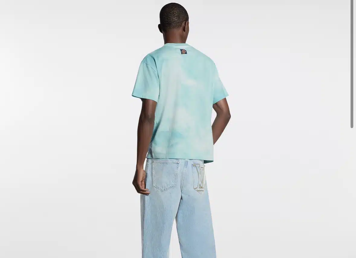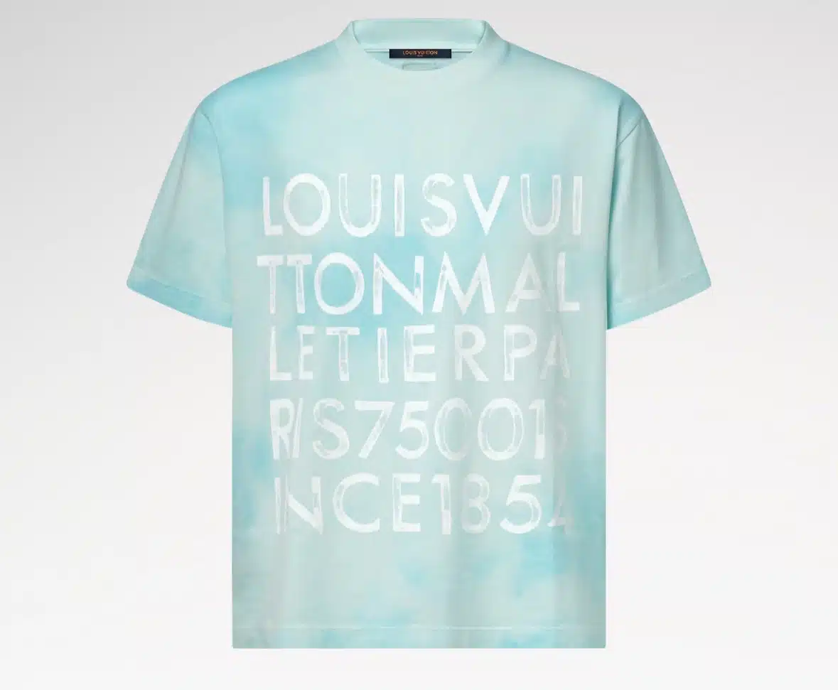 With its sunny turquoise tones, this casual organic cotton T-shirt is tinted with a tie-dyed and sun-bleached effect, which makes each piece unique. Graphic signature lettering is printed across the front, while a woven Marque L.Vuitton Déposée label signs the back.