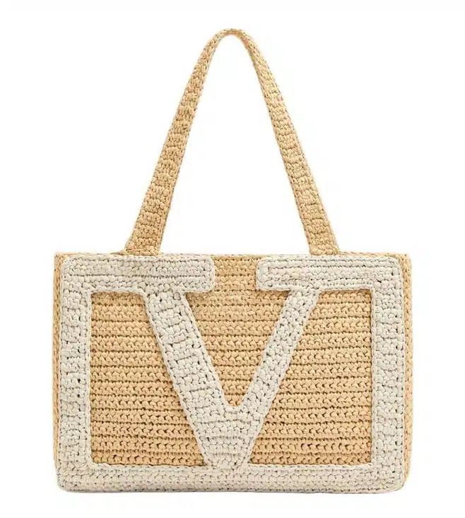 Natural and white viva superstar medium tote, open top, 1 compartment, crochet pattern, inside logo, dual carry handles. Products purchased from Darveys are supported exclusively by the warranty/exchange policies of Darveys and its partner boutiques. Brand owners and their channel partners are not responsible for exchange/warranty services for items purchased through Darveys