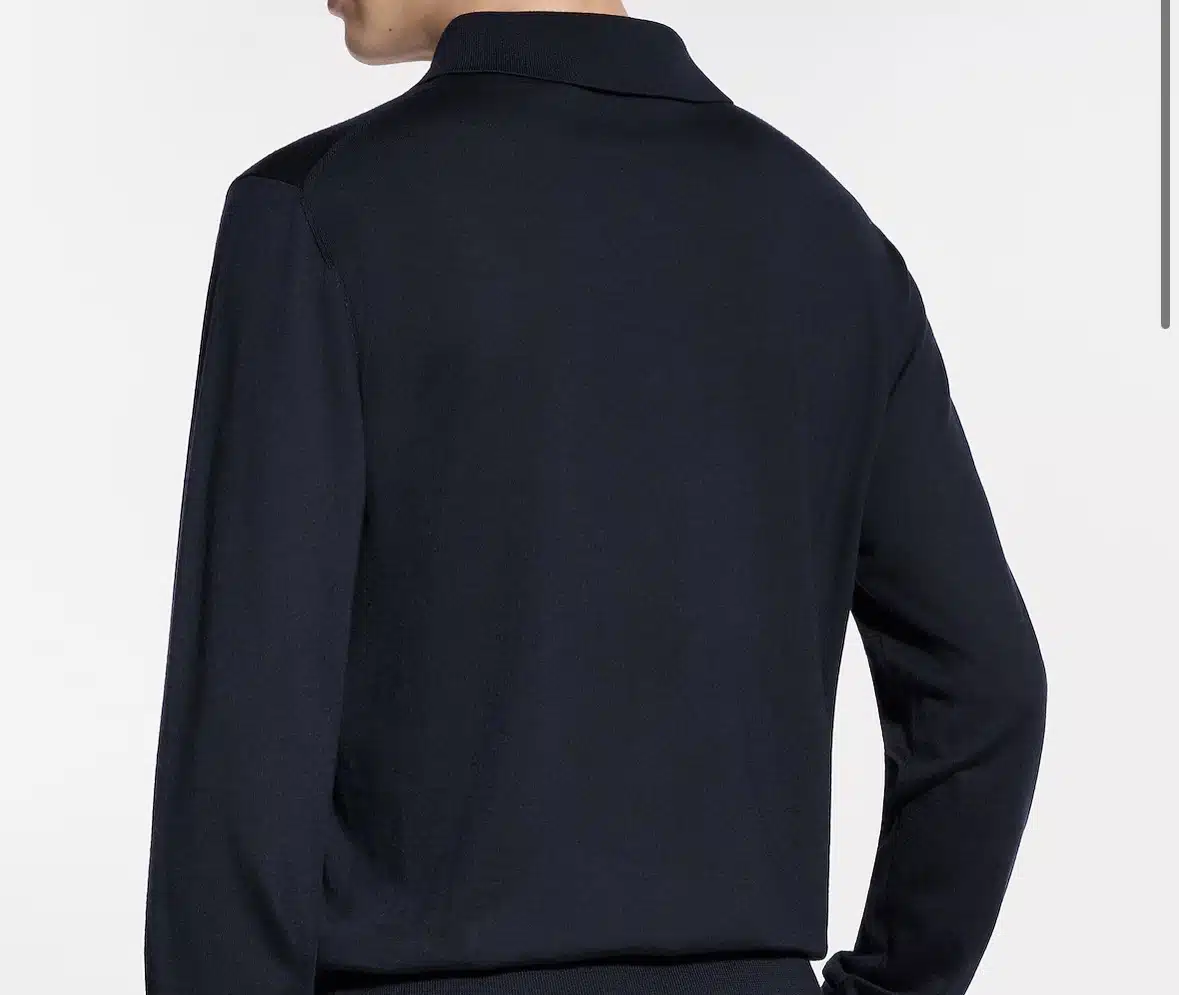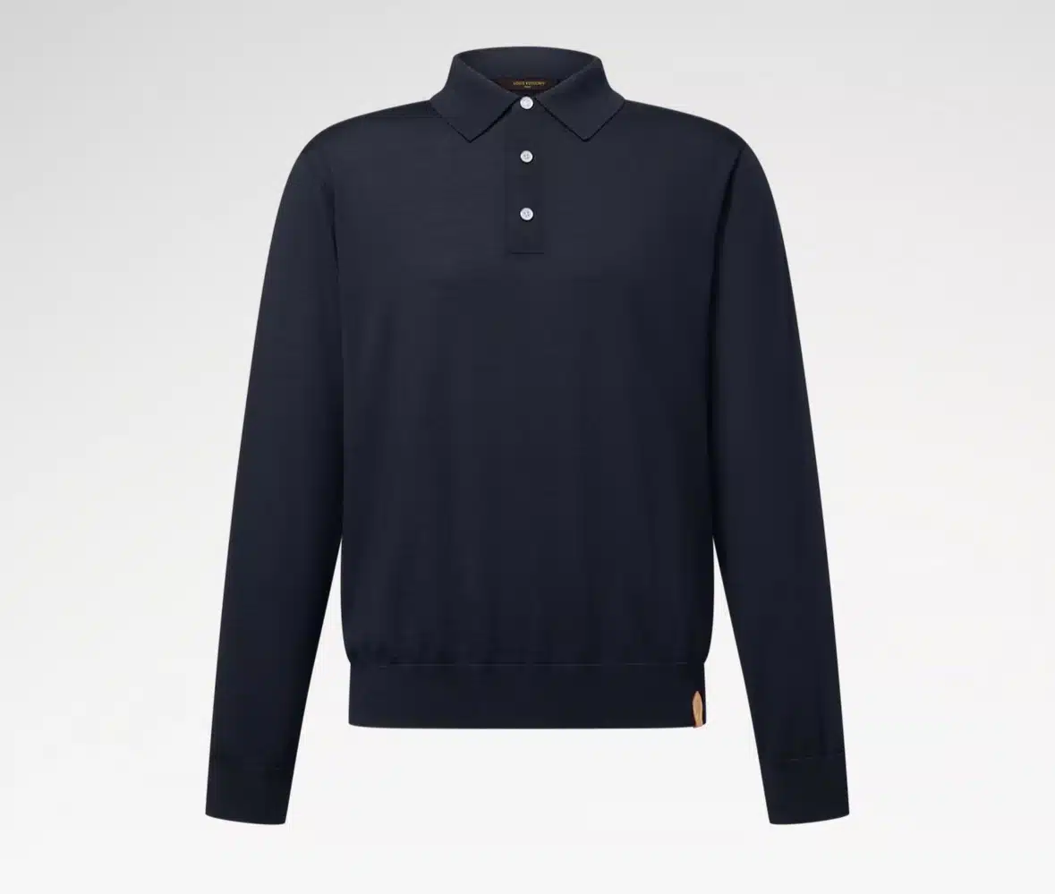 Discreet luxury defines this navy blue long-sleeved polo shirt, with a superfine knit blending merino wool, silk and cashmere for superior softness and durability. A signed VVN leather tab on the left hem evokes the House’s trunk-making heritage. This exclusive piece can complete a wide array of looks, from formal to weekend ensembles.